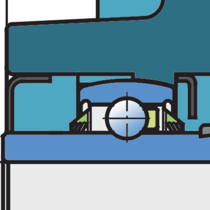 The 3-lip seal on the both side protects the bearing from contaminants. The Metal cover ring protects the seal from mechanical damage and from entanglement of grass stems of plants and twines.