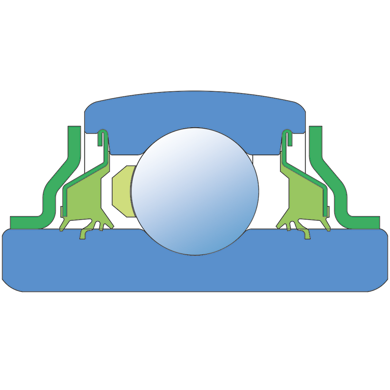 A 5-lip seal with Metal flinger ring on the both side of the bearing, provides equal protection against contamination. 5-lip seal provides a high level of the bearing protection from impurities and due to the special design of the seal the rotation speed can be doubled. The Metal flinger ring protects the seal from mechanical damage.