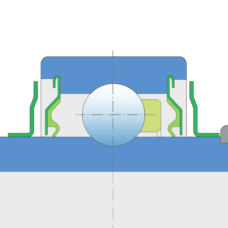 Dual sealing, protection cover placed on the inner ring protects against rough impurity particles and makes the labyrinth with the sheet part of the seal; then the sealing S type, with the labyrinth between the sheet part and the rubber lip that conducts the contact sealing. The friction and speeds are the same as with S but has much better protection against rough impurity particles. It is very good sealing system: the sheet part protects the seal from the soil, dust and rough particles. At the same time makes the labyrinth with the rubber part. The rubber part provides the contact sealing that prevents the penetration of the finer impurities, water, moisture, steam etc. Suitable for heavier conditions due to better protection against foreign matters. It is used with the Y bearings (standard).