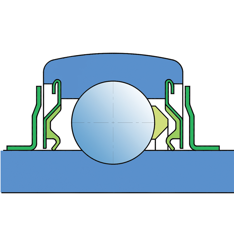 Dual sealing, protection cover placed on the inner ring protects against rough impurity particles and makes the labyrinth with the sheet part of the seal; then the sealing S type, with the labyrinth between the sheet part and the rubber lip that conducts the contact sealing. The friction and speeds are the same as with S but has much better protection against rough impurity particles. It is very good sealing system: the sheet part protects the seal from the soil, dust and rough particles. At the same time makes the labyrinth with the rubber part. The rubber part provides the contact sealing that prevents the penetration of the finer impurities, water, moisture, steam etc. Suitable for heavier conditions due to better protection against foreign matters. It is used with the Y bearings (standard).